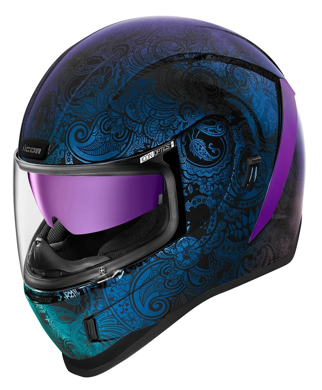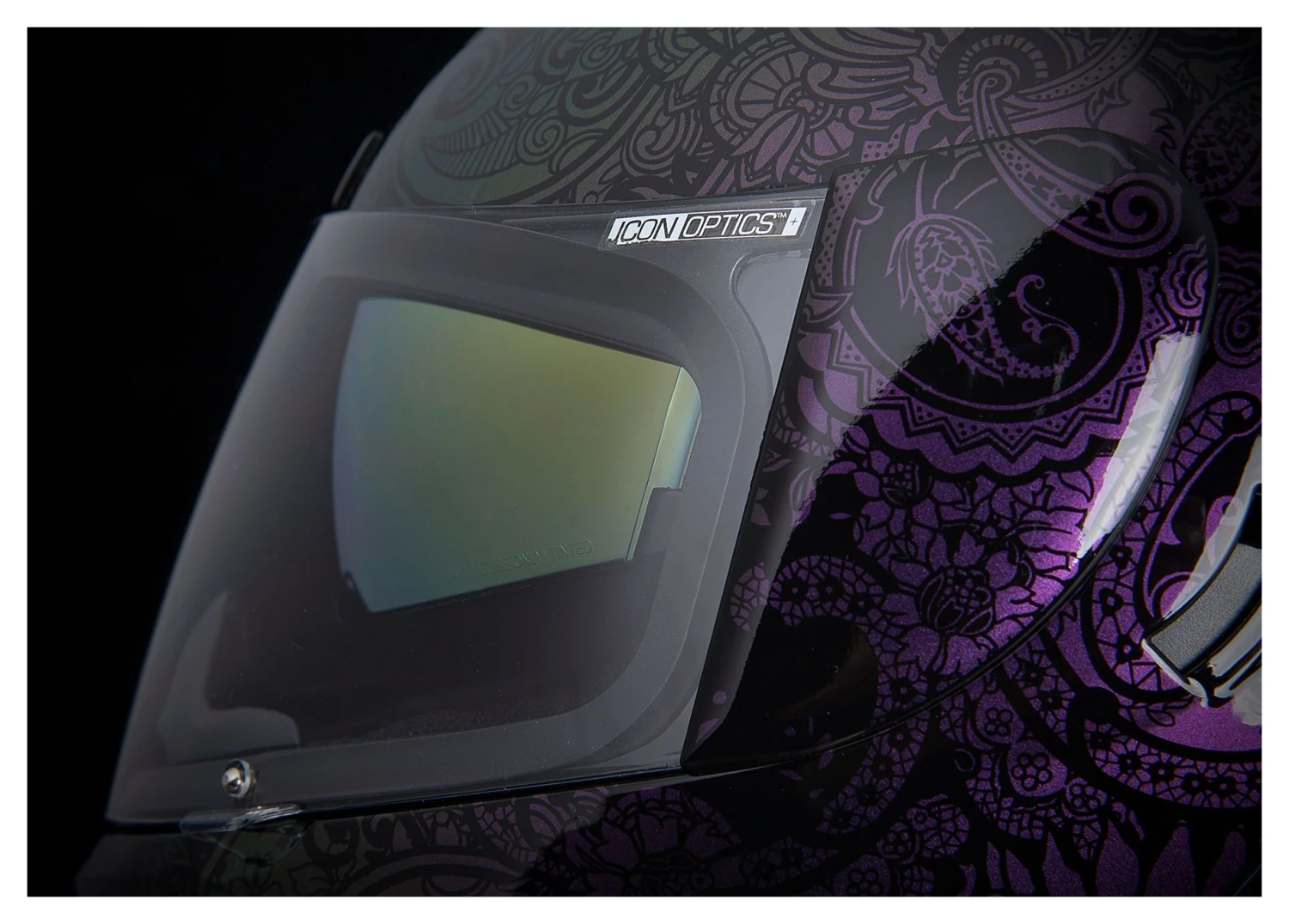 The Chantilly Opal version of the Icon Airform Helmet includes color-matched RST rear spoilers and a matching drop down internal sun visor. Very stunning.Â