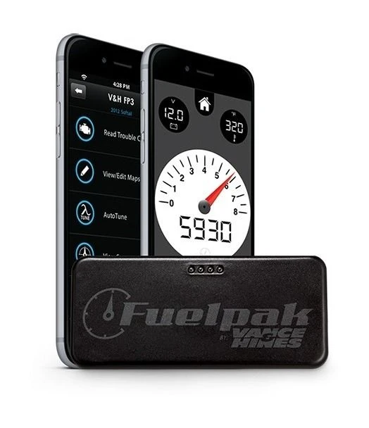 The Fuel Pack FP-3 is revolutionizing fuel management for Harley-Davidson J-1850 models. Connecting wirelessly by Bluetooth to any iPhone or Android smartphone, FP-3 makes it simple for a rider to recalibrate a host of engine parameters. Mapping for exhaust systems and other performance upgrades is available from the expansive library of calibrations being developed by Vance & Hines. FP-3 also boasts an Autotune feature that changes the air/fuel ratio many times a second, which means your bike actually gets better as you ride it! With the Fuelpak FP-3 module plugged-in, live sensor data can be viewed through your smartphone or tablet to display speed, RPM, power, torque,ย cylinder head temperature, voltage, and other vital information through the free V&H application’s user interface.ย Diagnostic Trouble Codes can also be read and cleared with the FP3.